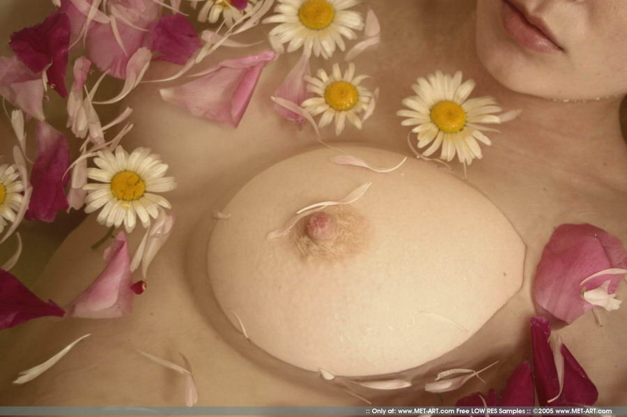 in bath filled with flowers getting wet in Profumo by Slastyonoff